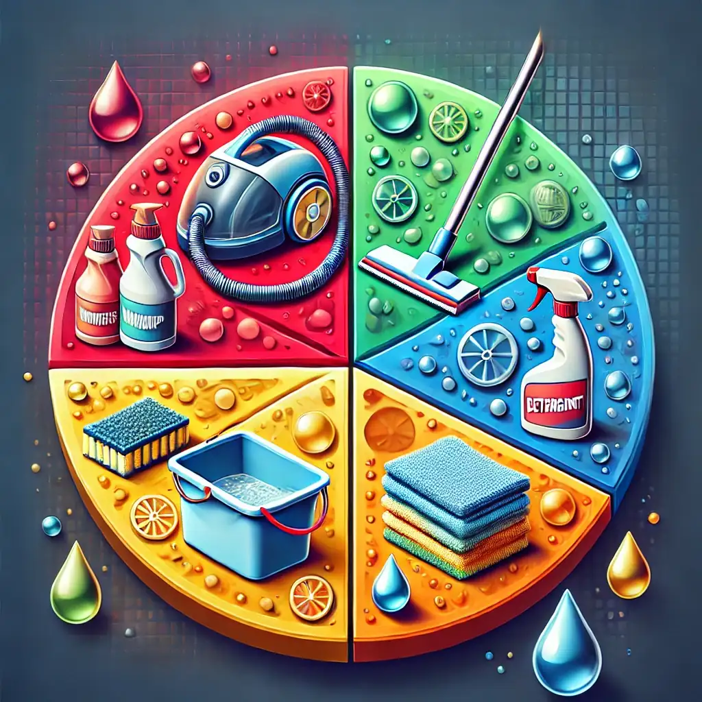 I detergenti aiutano a sciogliere grasso, germi e macchie. Esistono prodotti specifici per vetri, pavimenti, superfici in legno e acciaio, spesso con formule ecologiche e antibatteriche.